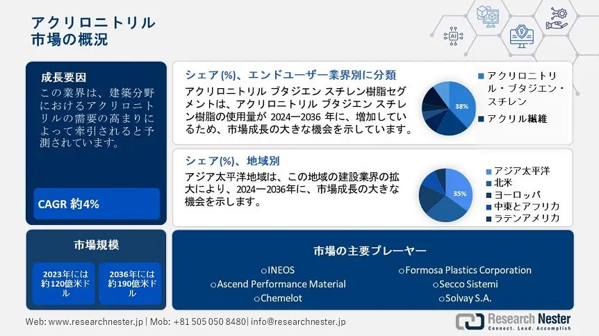 詳細なレポートは以下からアクセスできます:https://www.researchnester.jp/industry-analysis/acrylonitrile-market/213