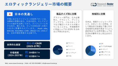エロティックランジェリー市場について、市場定義、市場概要、成長の原動力と課題、市場セグメンテーション、地域別動向、主要プレーヤー、Research Nester の概要をわかりやすく解説します。